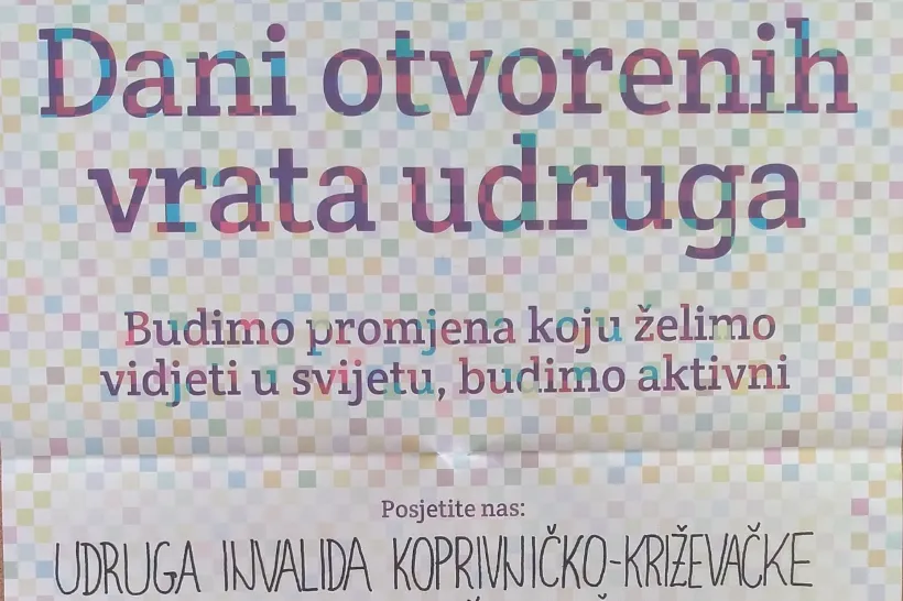 Poštovani,obavještavamo Vas da ćemo se Dan otvorenih vrata Udruge danas održati od 9 do 13 sati na našem info-izložbenom štandu.