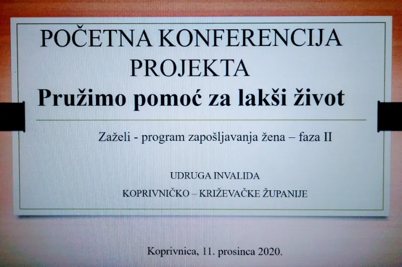 Dana 11. prosinca 2020. godine održana je početna konferencija projekta Pružimo pomoć za lakši život Udruge invalida Koprivničko-križevačke županije. Konferenciju