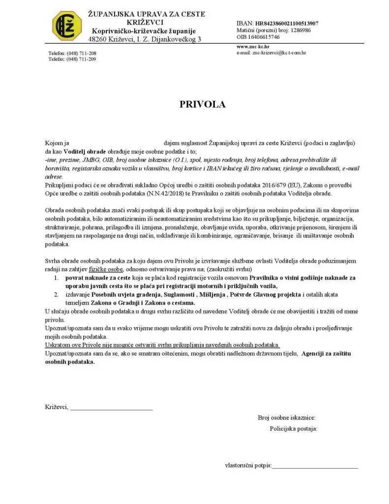 Obrazac zahtjeva i Privolu možete pronaći na poveznici: https://zuc-kc.hr/wp-content/uploads/2022/02/zahtjev_povrat_cestarine_neiskoristeno.pdf… ili u prilogu ove objave u jpg formatu.
