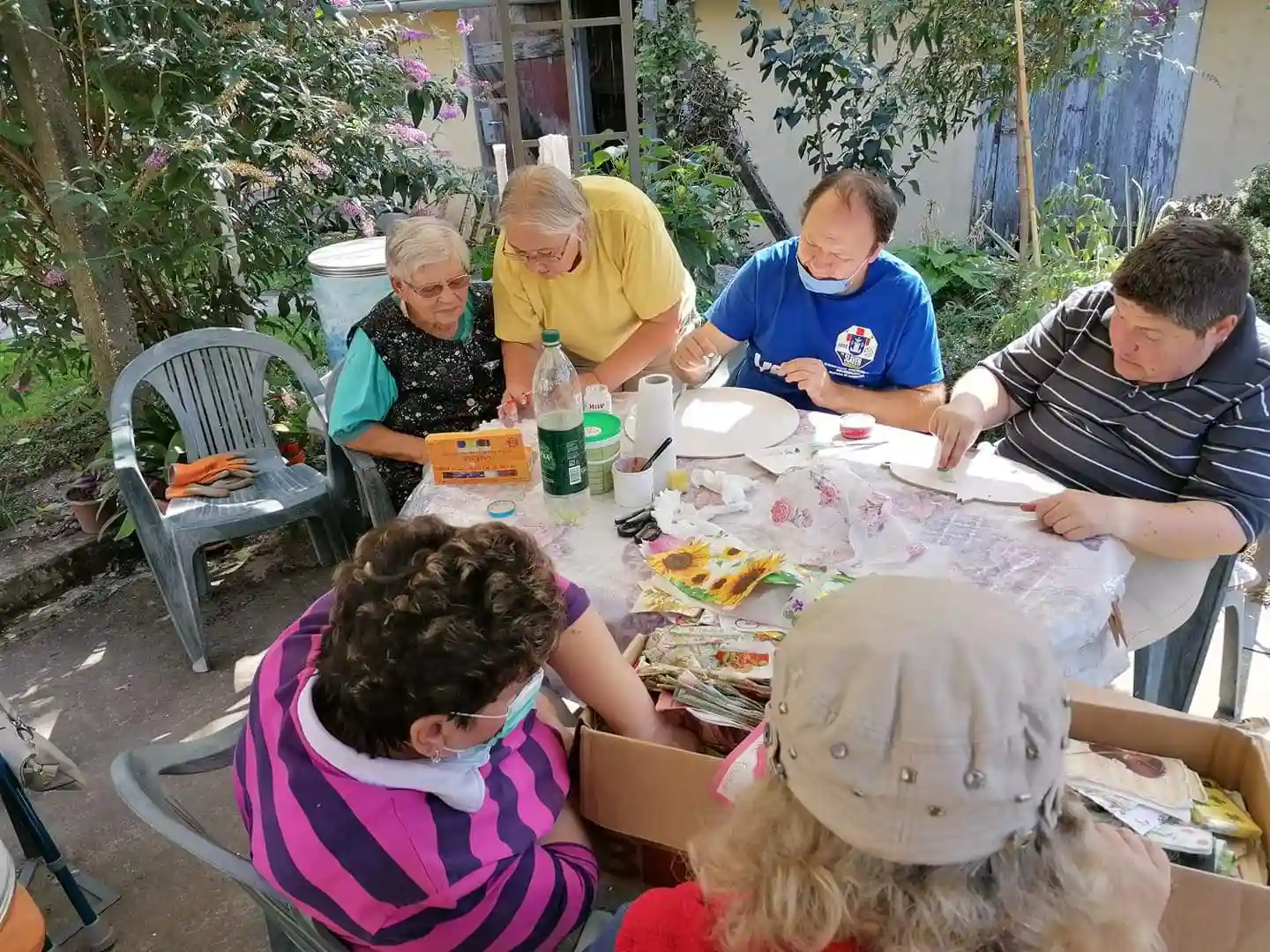 U idiličnom ozračju dvorišta naših voditelja Mirjane Bratković okupili smo se u sjenici, bojali i radili decoupage tehniku. Uspjeli smo “uloviti” krasan sunčani rujanski dan i proveli trenutke u dobrom druženju.
