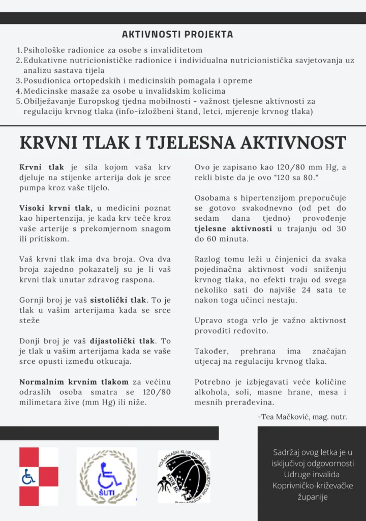 Promovirali smo i Kampanju Saveza društava distrofičara Hrvatske „Za pokret“. Svojim štandom nam se pridružila tvrtka „ottobock“ koja je promovirala ortopedska pomagala i proizvode iz svoje ponude. Osim toga, u našem je društvu Tea Mačković, magistra nutricionizma i znanosti o hrani iz nutricionističkog savjetovališta “Nutrea” ovom prilikom građanima omogućila vaganje na impedancijskoj vagi i besplatnu analizu sastava tijela.